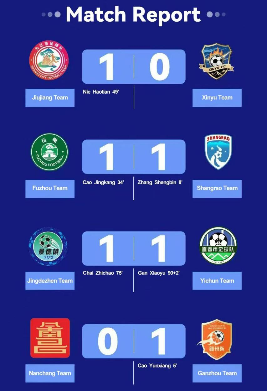 At the beginning of the match, Shangrao Team took the lead with a long-range shot in their away match. However, in the 34th minute of the first half, Fuzhou Team capitalized on a penalty opportunity to equalize the score, and the match ended in a 1:1 draw.